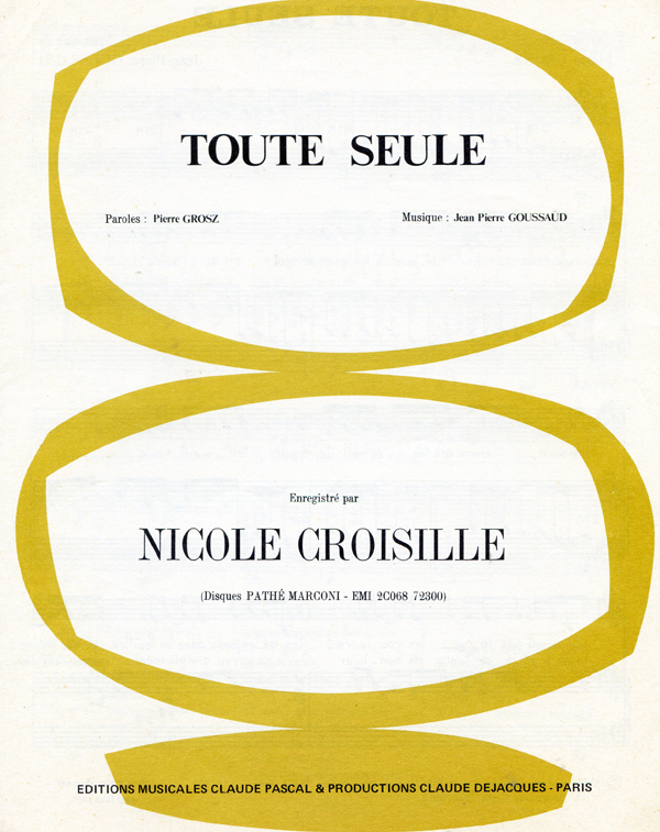 Toute seule est une chanson qui a été écrite par Pierre Grosz et composée par Jean-Pierre Goussaud pour Nicole Croisille. Le tandem avait déjà signé pour elle La Garonne, titre paru en 1978. Avant d’être enregistrée par Croisille, c’est Rose Laurens qui va maquetter Toute seule en 1981. Cette chanson tout en délicatesse autour du thème de la solitude est aussi une invitation à oser s’ouvrir aux autres. Elle paraîtra sur l’album J’aime pas quand tu pars qui sort en France et aux Pays-Bas en 1981, mais aussi au Canada sous le titre Le Cœur au garde à vous… Toute seule sera également un 45 tours chez nos cousins de la Belle Province.