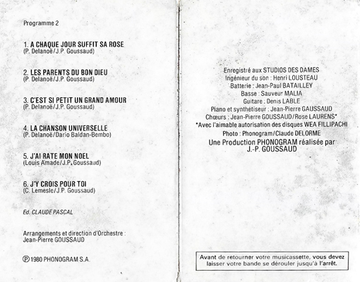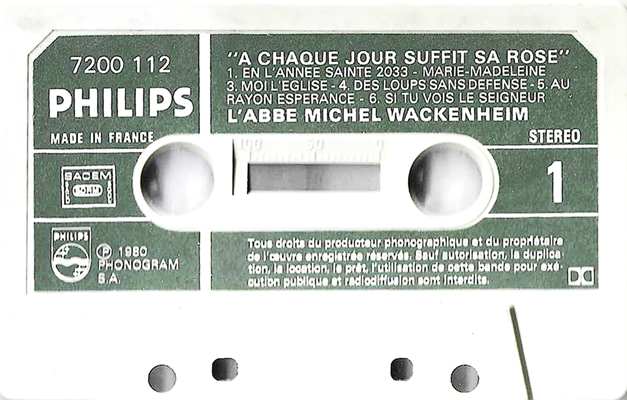 En 1980, Rose Laurens est choriste sur deux 45 tours de l’abbé Michel Wackenheim, un album ainsi que sur un sampler promo 5 titres reprenant notamment le contenu des deux simples. Ces enregistrements sont produits par Jean-Pierre Goussaud qui en signe aussi les arrangements, la direction d’orchestre et les plupart des compositions (les textes sont de Pierre Delanoë, Jean-Michel Bériat et Dario Baldan Bembo). Rose est créditée sur l’album seulement.