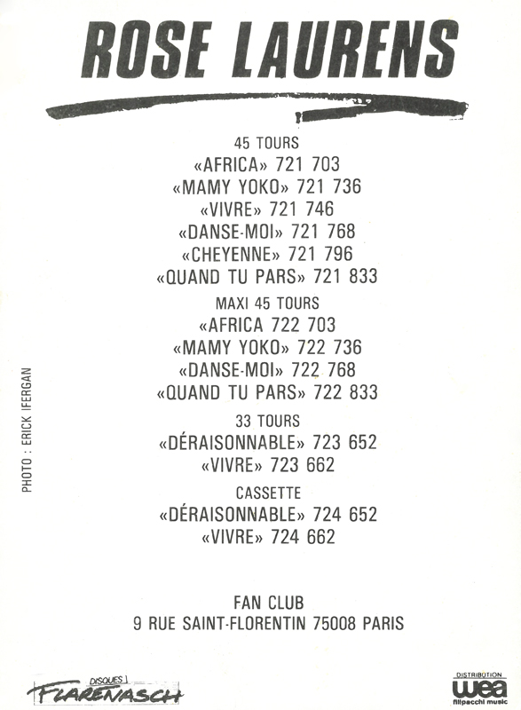 Quand tu pars tient une place à part dans le répertoire de Rose Laurens mais aussi et surtout dans le cœur de ses admirateurs qui citent souvent la chanson comme leur préféré, au même titre qu’Africa. Et l’on ne cesse de se rendre compte qu’il en est de même avec American Love pour son public étranger. Récemment, ce sont les couturiers qui se sont emparés d’American Love. La chanson est en effet diffusée lors d’un défilé Christian Dior aux États-Unis en 2019, puis pendant la fashion week de 2024 lors du final du défilé Schiaparelli.